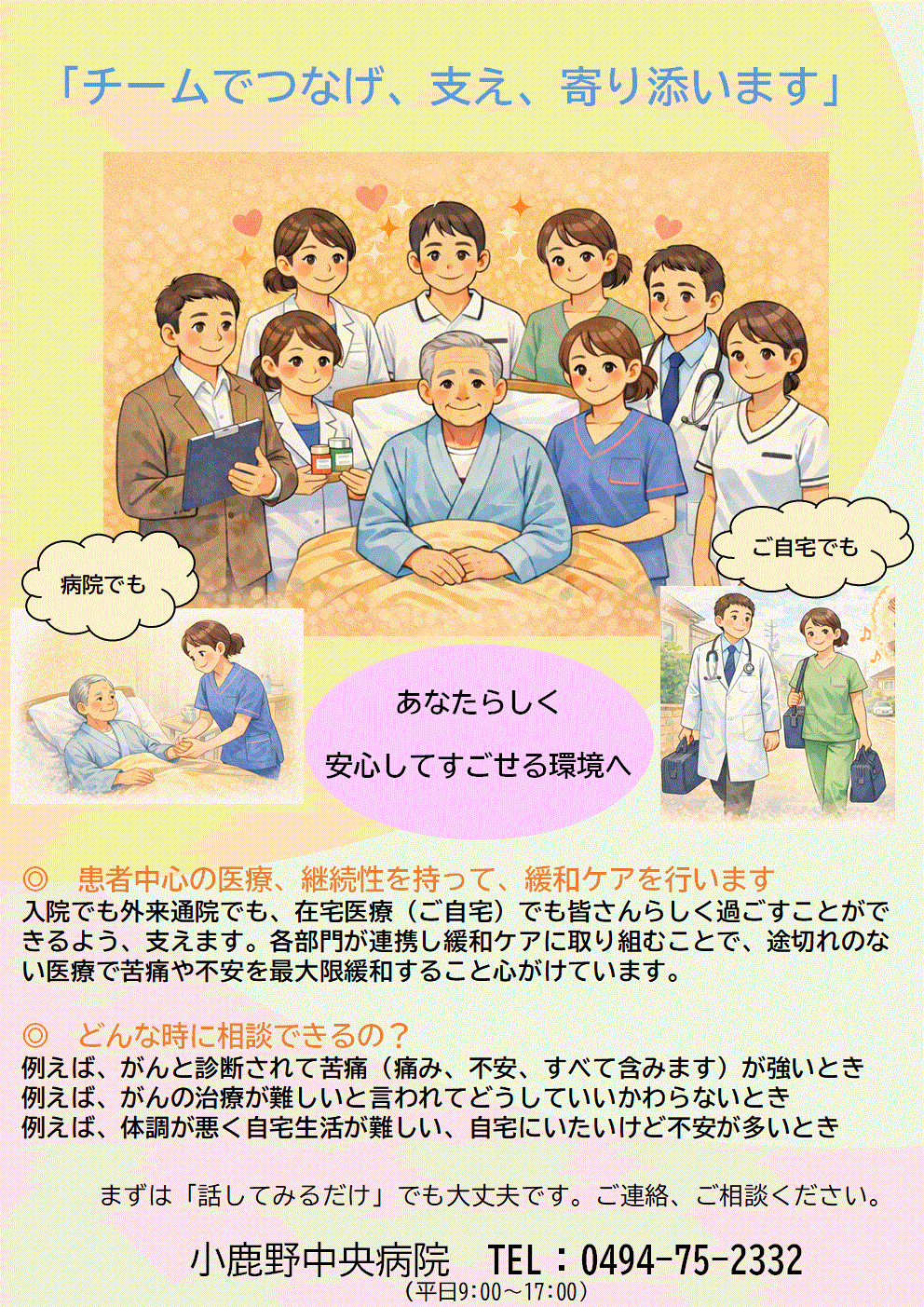 当院では緩和ケア委員会を設置し、他職種で連携を図りながら「在宅緩和ケア」を行っています。